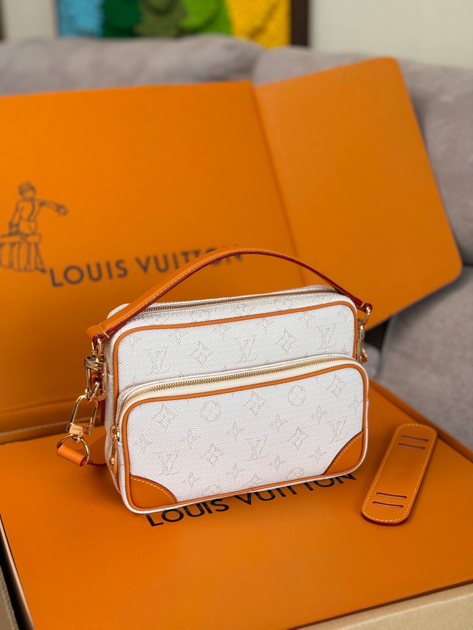 LV 25S NIL BAG 98MM IN WHITE MONOGRAM CANVAS AND CALFSKIN GOLD HARDWARE