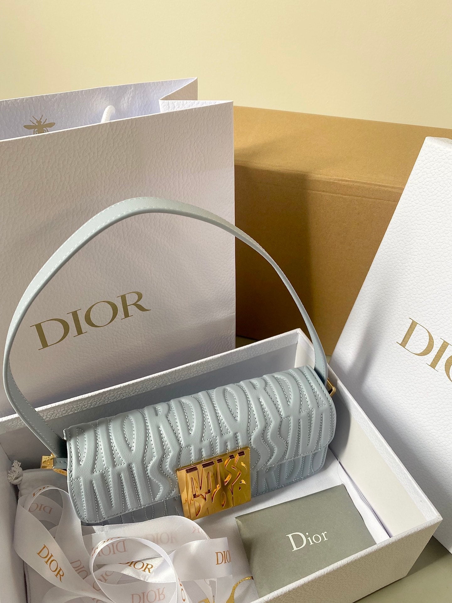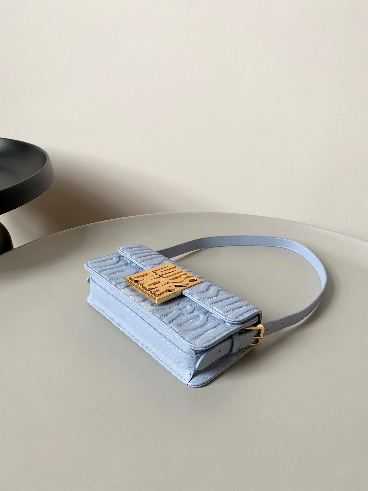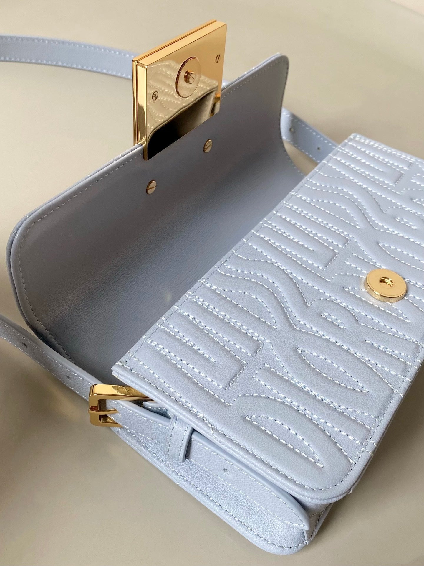 MEDIUM FLAP BAG 22 IN BABY BLUE QUILTED ALLOVER CALFSKIN