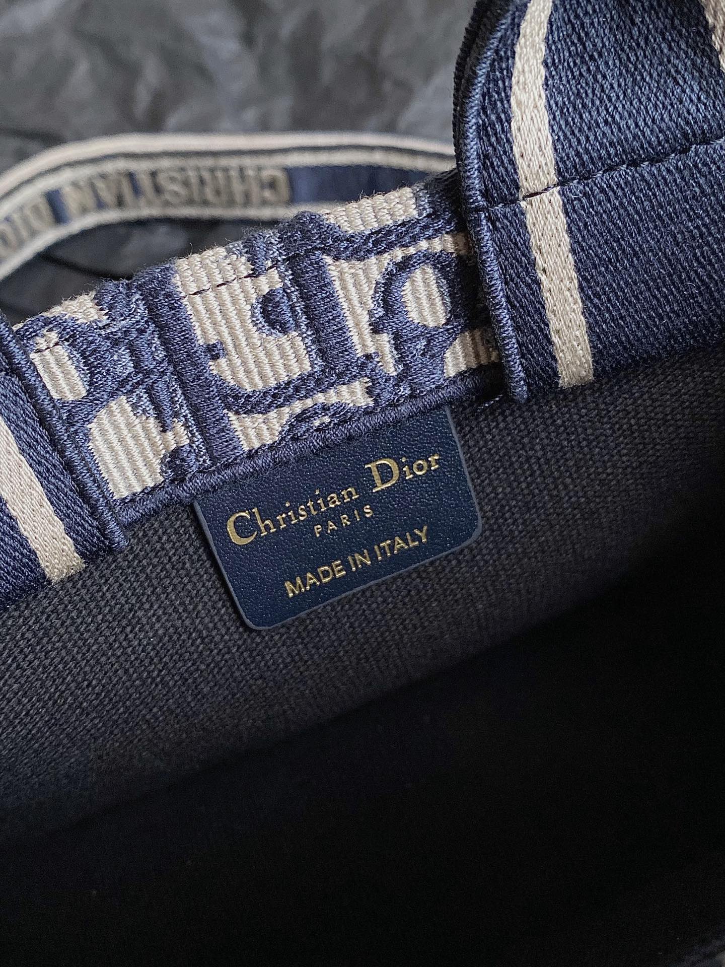MINI BOOK TOTE 21 BLUE OBLIQUE EMBROIDERY