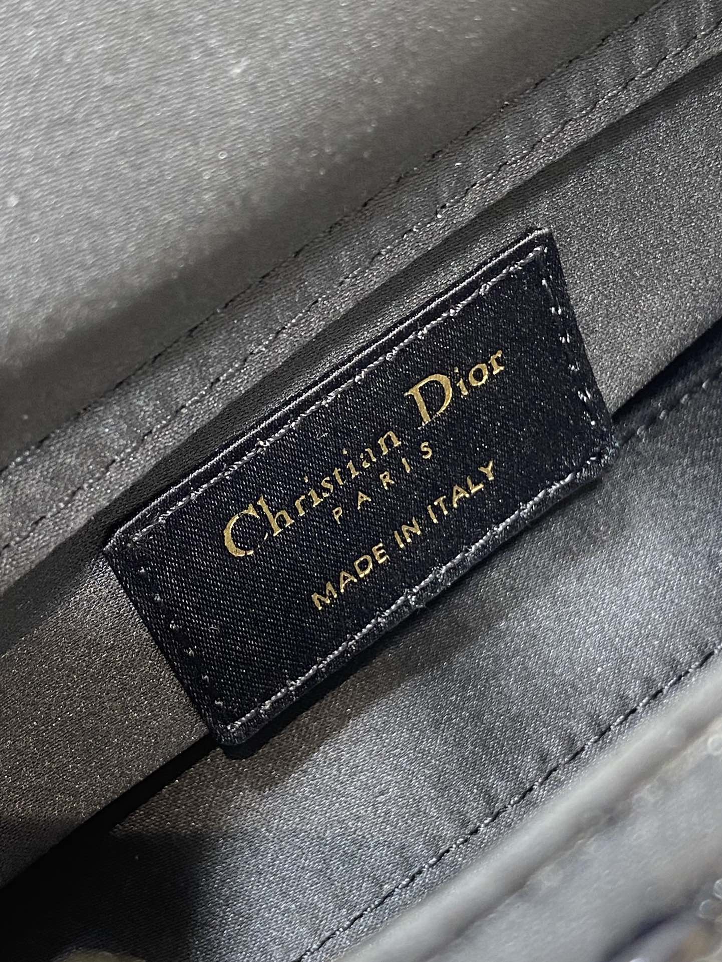 MINI LADY BAG 16 IN BLACK SATIN AND CALFSKIN WITH BEADED DESIGN
