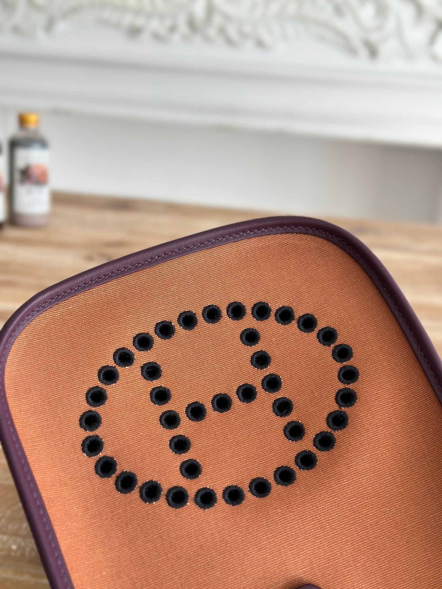 MINI NEO 17 EVELYNE BAG IN BRONZE BROWN CANVAS AND PLUM PURPLE CALFSKIN