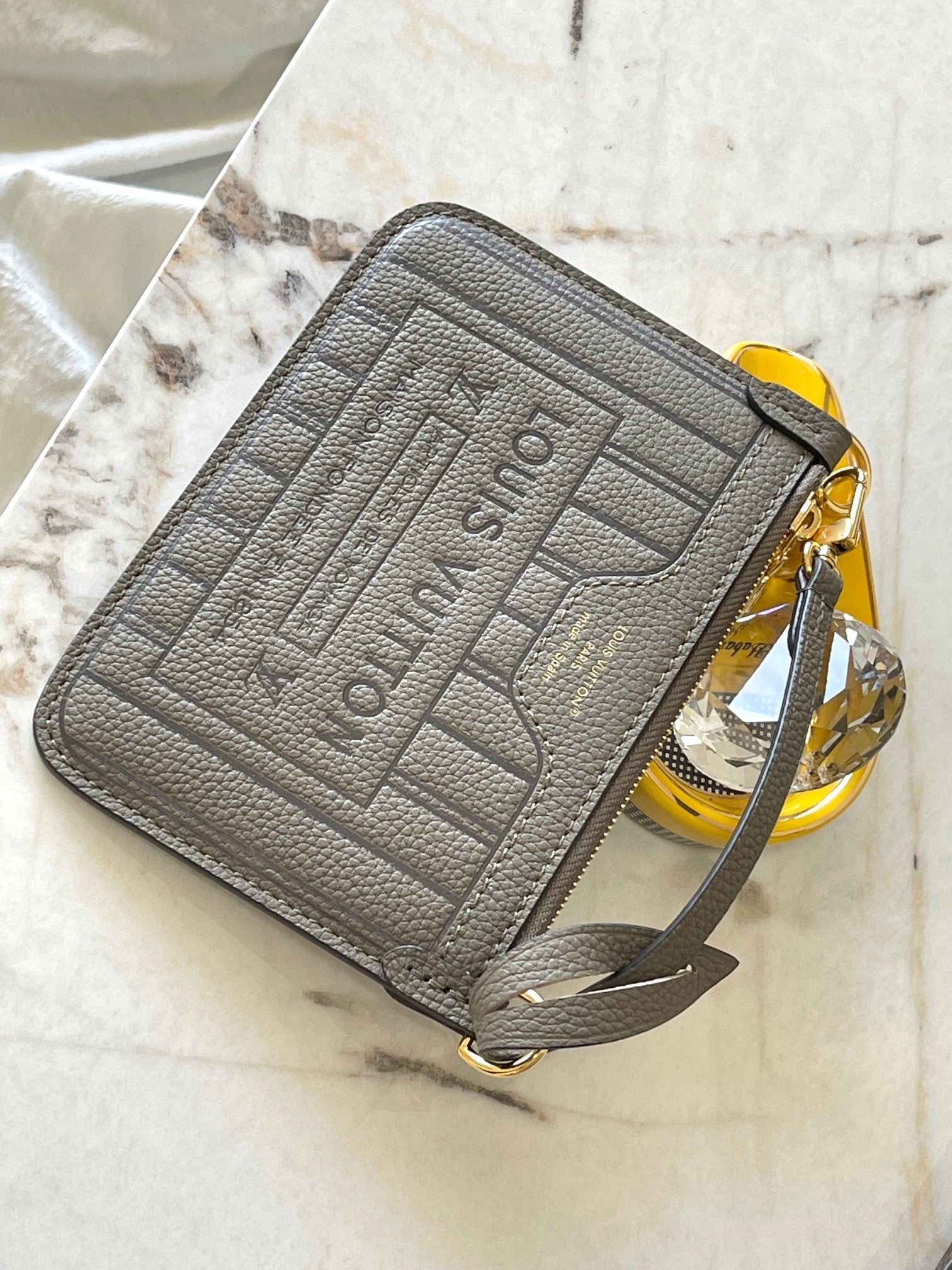 NEVERFULL BANDOULIÈRE INSIDE OUT BB 24 IN BROWN MONOGRAM CANVAS AND GRAY CALFSKIN