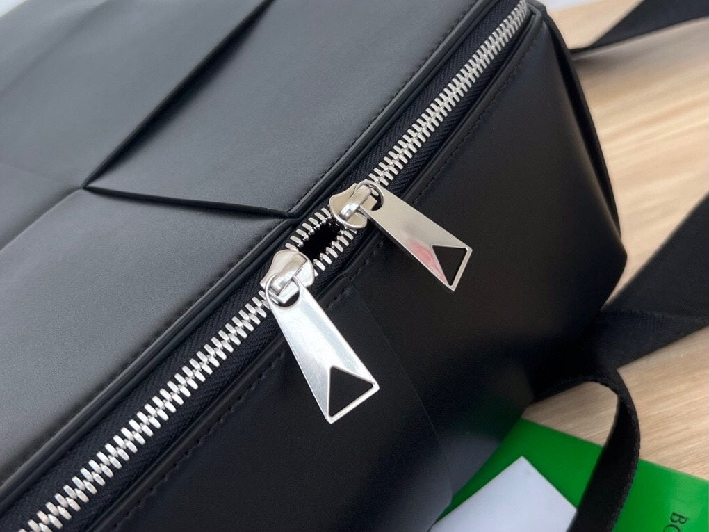 WOVEN BACKPACK 34 IN BLACK LAMBSKIN